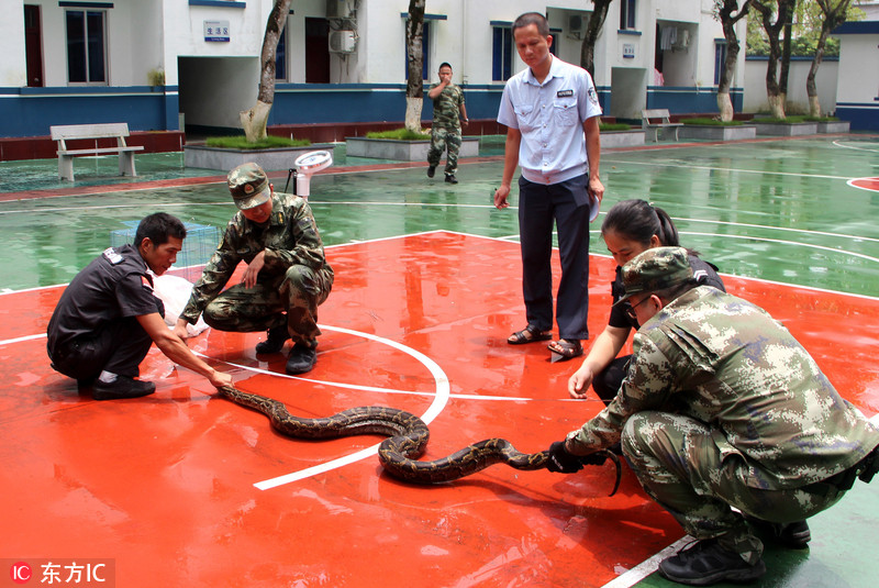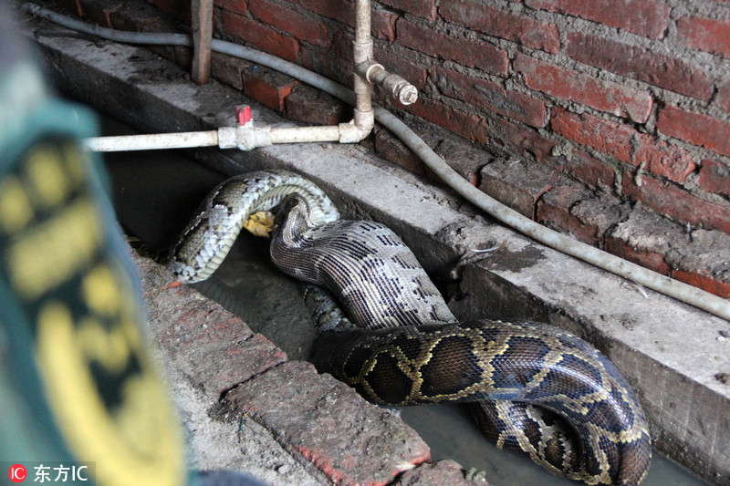 2.6米蟒蛇闖民宅偷雞 兵哥兩小時“緝拿歸案”