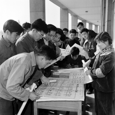 1963年,朝陽區(qū)新華書店門市部工作人員到工人體育場(chǎng)零售第四套廣播體操掛圖